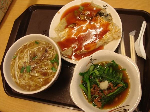 我的麵跟燙青菜,蝴蝶的蚵仔煎。