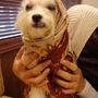 林meibo一臉羨慕地窩在她的外出袋裡看著我們吃東西。